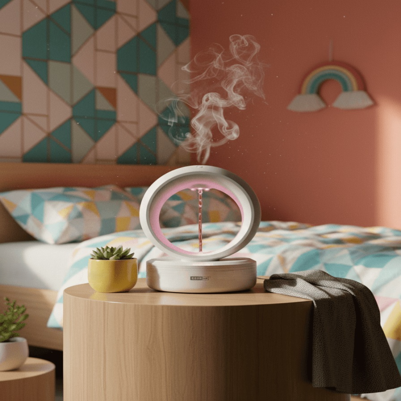 - Elevate your home ambiance with the GearUp GH08 Anti-Gravity Water Humidifier. This isn’t your typical humidifier; it features a captivating anti-gravity water droplet display that creates a mesmerizing visual effect, making droplets appear to float upwards as if defying gravity. This eye-catching element adds a futuristic flair to any room, making it an ideal choice for bedrooms, offices, or living areas for those who appreciate both functionality and aesthetics.